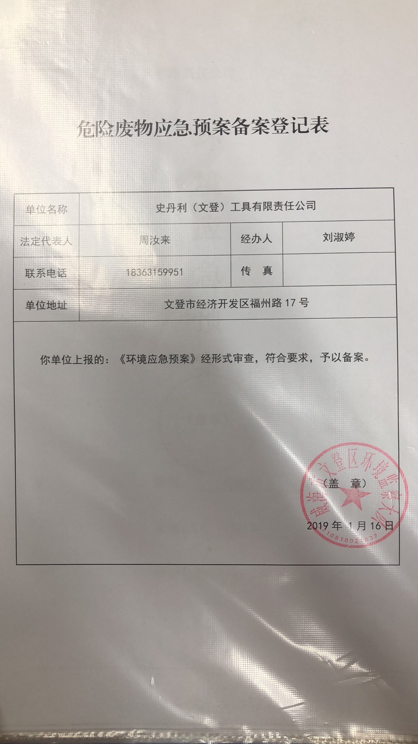 史丹利(文登)工具有限責(zé)任公司環(huán)境信息公開表